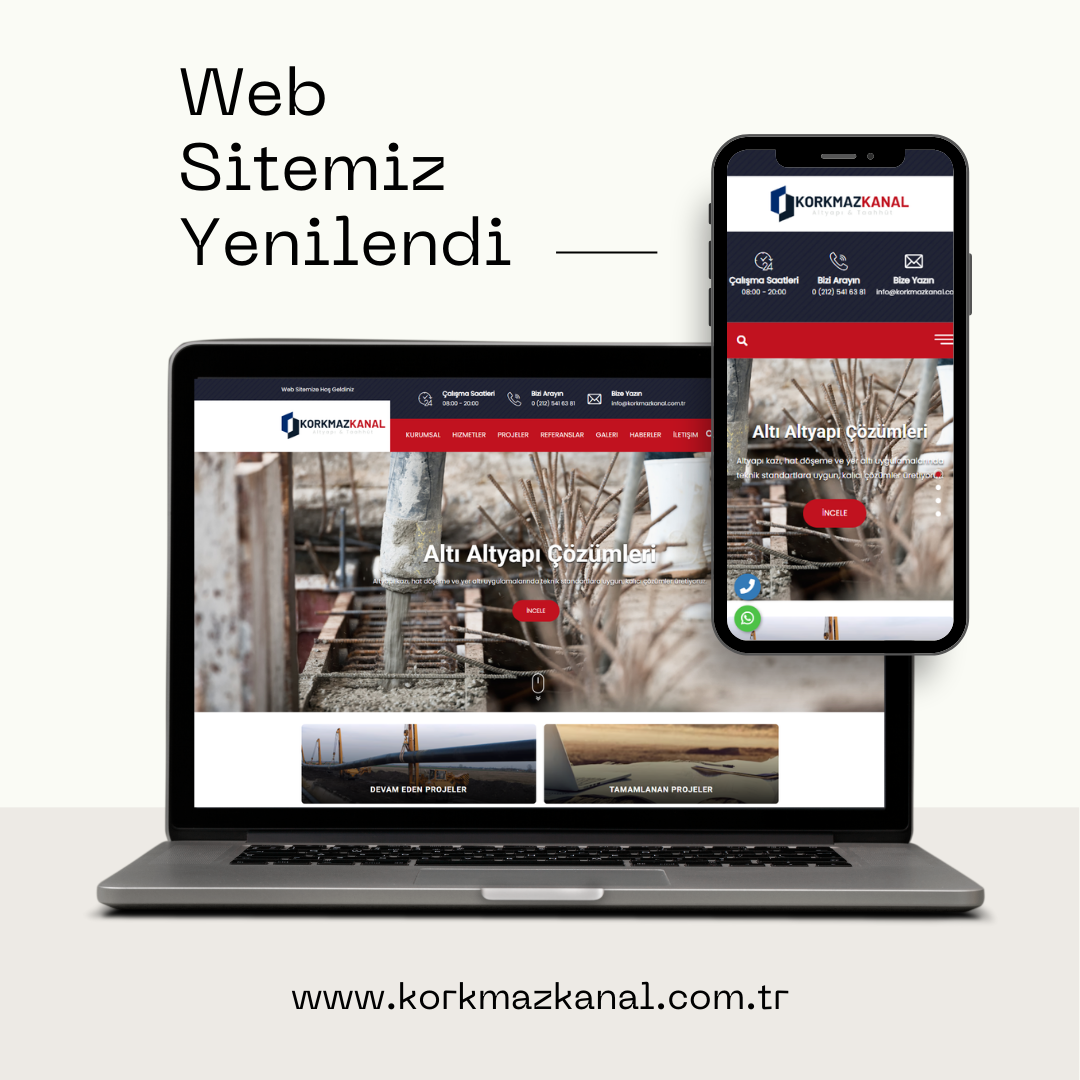 Kurumsal iletişimimizi daha sade, daha anlaşılır ve erişilebilir hale getirmek amacıyla web sitemizi yeniledik. Yeni web sitemizde, altyapı ve taahhüt alanında sunduğumuz hizmetlere, firma yapımıza ve iletişim bilgilerimize daha kolay ulaşabilirsiniz. Bu kapsamda yayına alınan yeni web sitemiz üzerinden Korkmaz Kanal’ın faaliyet alanları, kurumsal yaklaşımı ve güncel duyuruları tek bir çatı altında sunulmaktadır.